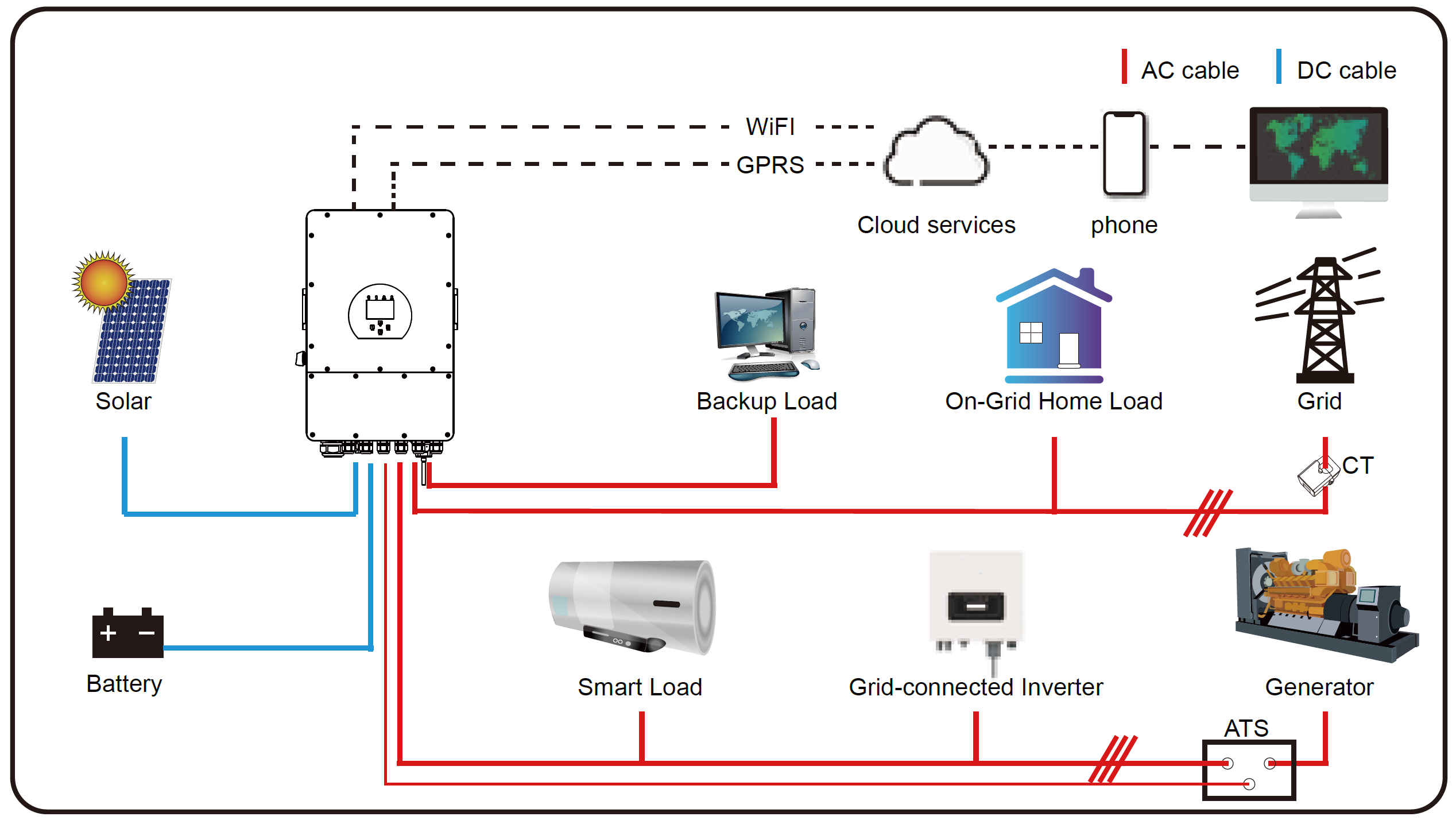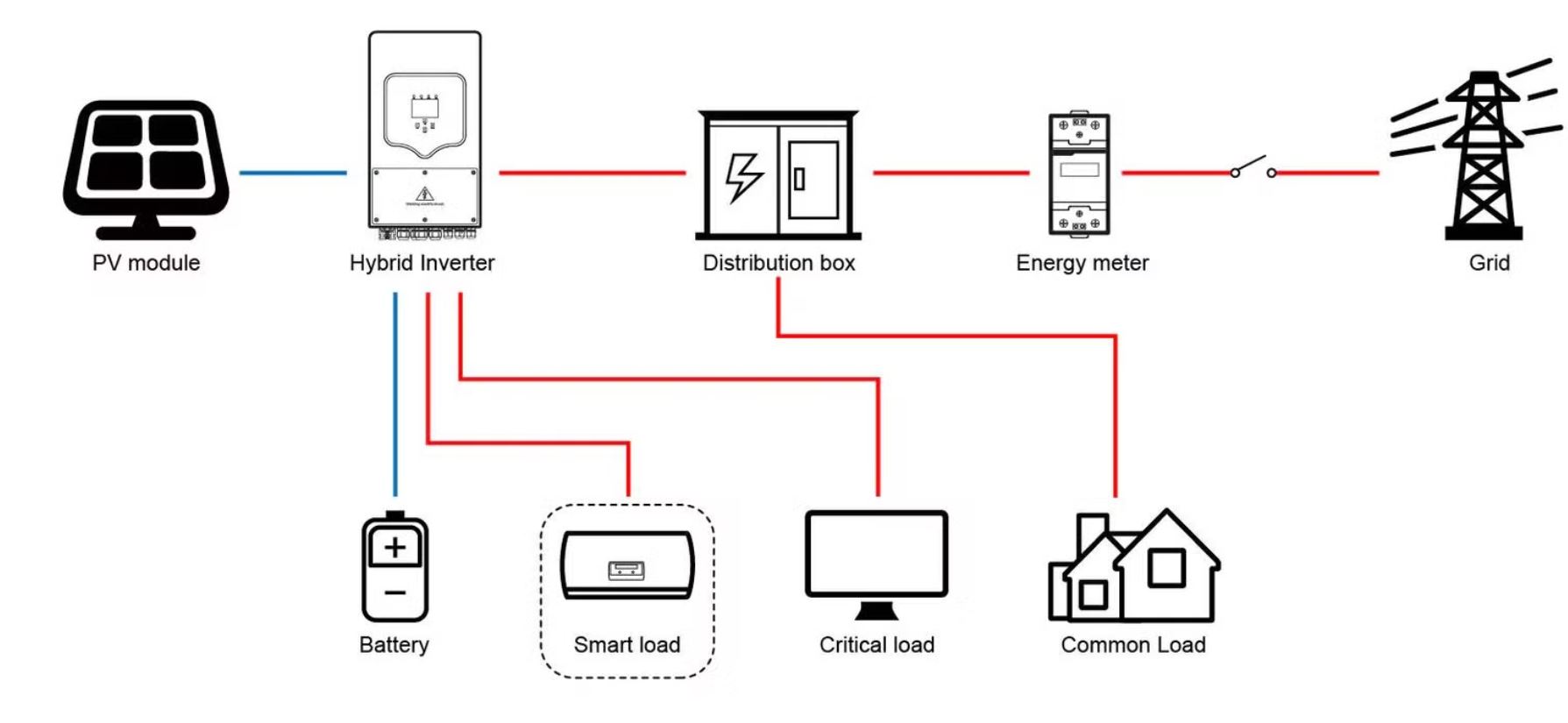 Hibrit invertör, akü invertörü ve şebekeye bağlı invertörün işlevlerini birleştiren akıllı bir invertördür. Daha fazla enerji bağımsızlığı ve dayanıklılık sunar ve mümkün olduğunca enerji bağımsızlığı isteyen ev veya işletme sahipleri için mükemmel bir seçimdir. Bu invertör tipinin birçok avantajı vardır, ancak işte bunlardan birkaç: Hibrit invertörlerde hiçbir risk yoktur.